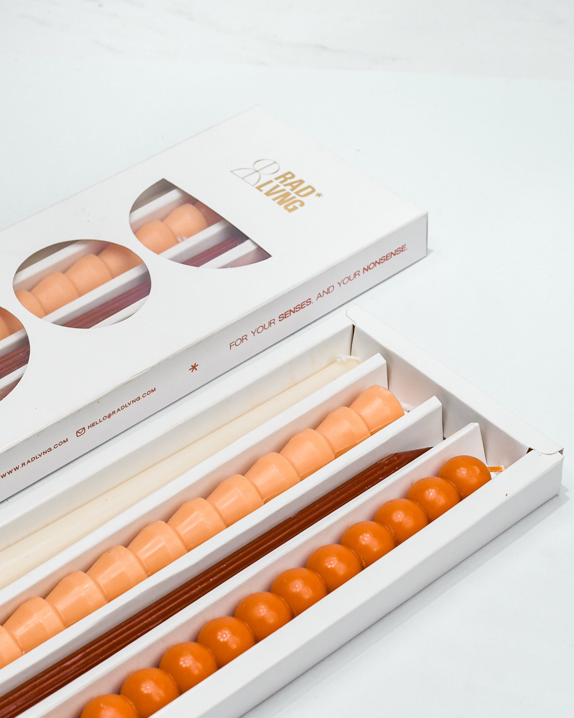Rad Living candlesticks bring a touch of charm to your space. Handcrafted with care, they’re designed to fit perfectly on candlestands, adding a warm, inviting glow to any setting. Great for everyday use or special occasions.