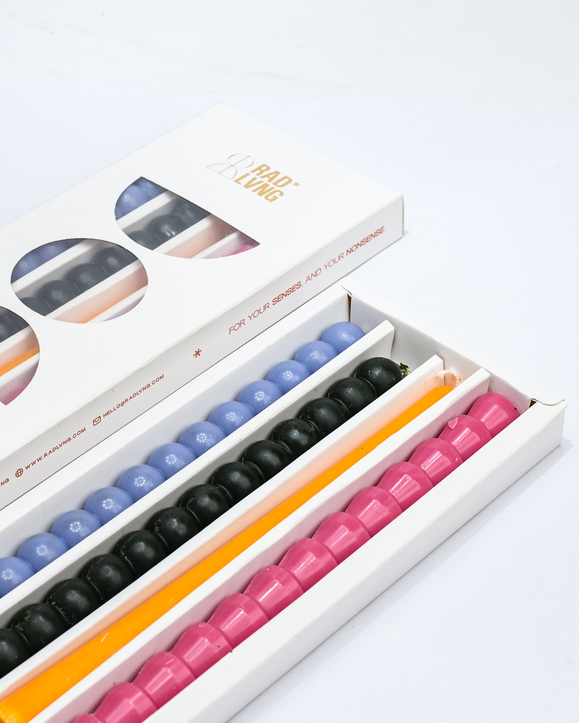 Rad Living candlesticks bring a touch of charm to your space. Handcrafted with care, they’re designed to fit perfectly on candlestands, adding a warm, inviting glow to any setting. Great for everyday use or special occasions.